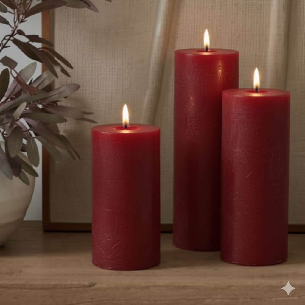 Transform your space into a sensory heaven with this red pillar candle. Crafted with high-quality wax, it not only provides gentle illumination but also evokes emotions and memories.